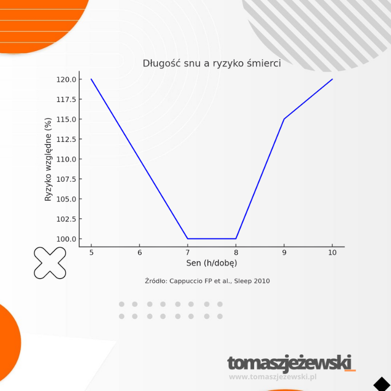 Sen to nie luksus, ale podstawowa potrzeba biologiczna. Badania pokazują, że zarówno niedobór snu (<6 godzin), jak i jego nadmiar (>9 godzin), zwiększają ryzyko przedwczesnej śmierci i chorób przewlekłych. Najzdrowsza długość snu to 7–8 godzin dziennie – właśnie wtedy nasz organizm najlepiej się regeneruje, a układ odpornościowy i sercowo-naczyniowy działają najsprawniej. Zła jakość snu, częste przebudzenia czy chrapanie dodatkowo nasilają ryzyko nadciśnienia, otyłości i cukrzycy. Dbanie o higienę snu to najprostsza i często niedoceniana inwestycja w zdrowie i długowieczność.