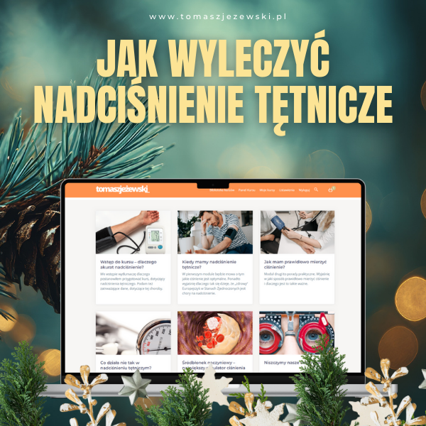 Nie pozwól, aby nadciśnienie było cichym zagrożeniem. To nie tylko liczba na aparacie – to poważny stan, który nieustannie obciąża Twoje serce, naczynia, nerki i mózg. Święta i Nowy Rok to idealny czas, by podjąć najważniejszą decyzję dla swojego zdrowia. W ramach mojej Świątecznej Oferty Specjalnej dajemy Ci narzędzie, by kompleksowo zawalczyć o problem w wyjątkowej cenie: kurs „Jak leczyć nadciśnienie tętnicze?