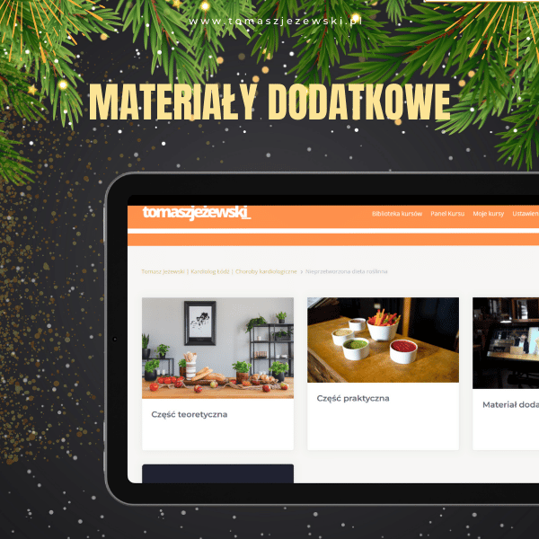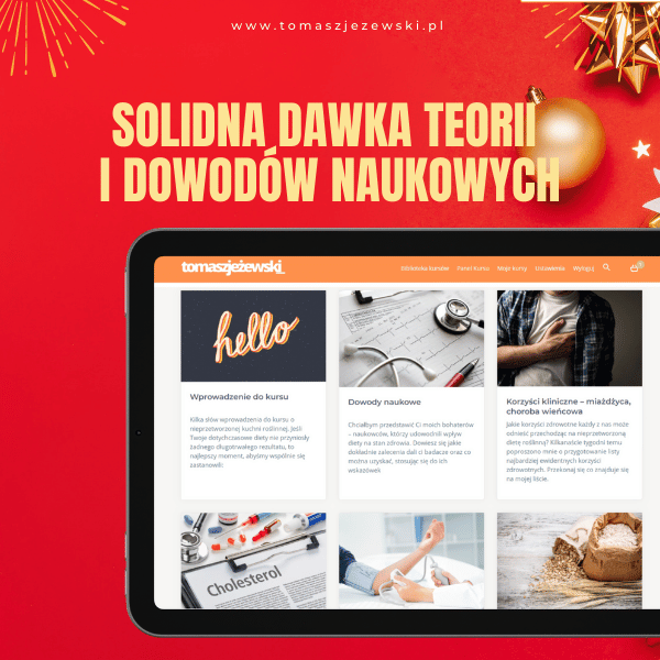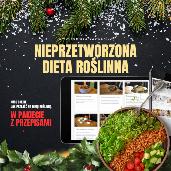 Zrób sobie najlepszy prezent pod choinkę: zainwestuj w swoje zdrowie! Poczuj się lżej i zyskaj energię, która jest niezbędna do celebrowania świąt i realizacji noworocznych celów. Nasz „Kompleksowy Kurs o Diecie Roślinnej” to wiedza, której potrzebujesz, by trwale zmienić nawyki żywieniowe. Skorzystaj z mojej specjalnej, świątecznej okazji i zadbaj o swój organizm jeszcze przed końcem roku w rewelacyjnej cenie!