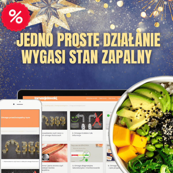 Dlatego tylko teraz, w ramach świątecznej promocji bożonarodzeniowej, daję Ci dostęp do mojego kompleksowego kursu „Omega Równowaga” w absolutnie wyjątkowej cenie. W 17 modułach nauczę Cię, jak zarządzać „dobrymi tłuszczami”, jak realnie wygasić zapalne pożary w organizmie, co badać i jak mądrze suplementować.
